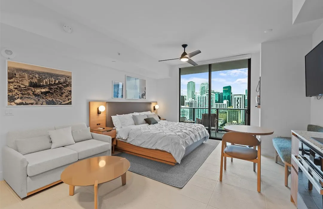 Une cuisine équipée fournissent un four et un lave-vaisselle. Vous pourrez également prendre un bus à l'arrêt de bus Biscayne Boulevard & Northeast 6th Street, située à seulement 5 minutes de marche, pour explorer le reste de Miami. L'hébergement comprend également un hammam et un sauna. De plus, un centre de fitness, ainsi que des cours d'yoga, sont à la disposition des clients.